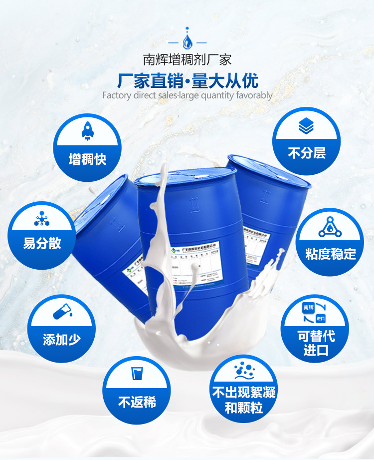 南輝PVC糊樹脂增稠劑是一種陰離子疏 水改性聚氨酯流變增稠劑,特別適用于PVC糊樹脂、水性涂料、內(nèi)外墻乳膠漆、水性油墨、粘合劑、彈性 膠漿體系的增稠,具有較好的增稠效果以及優(yōu)異的流動、流平性。